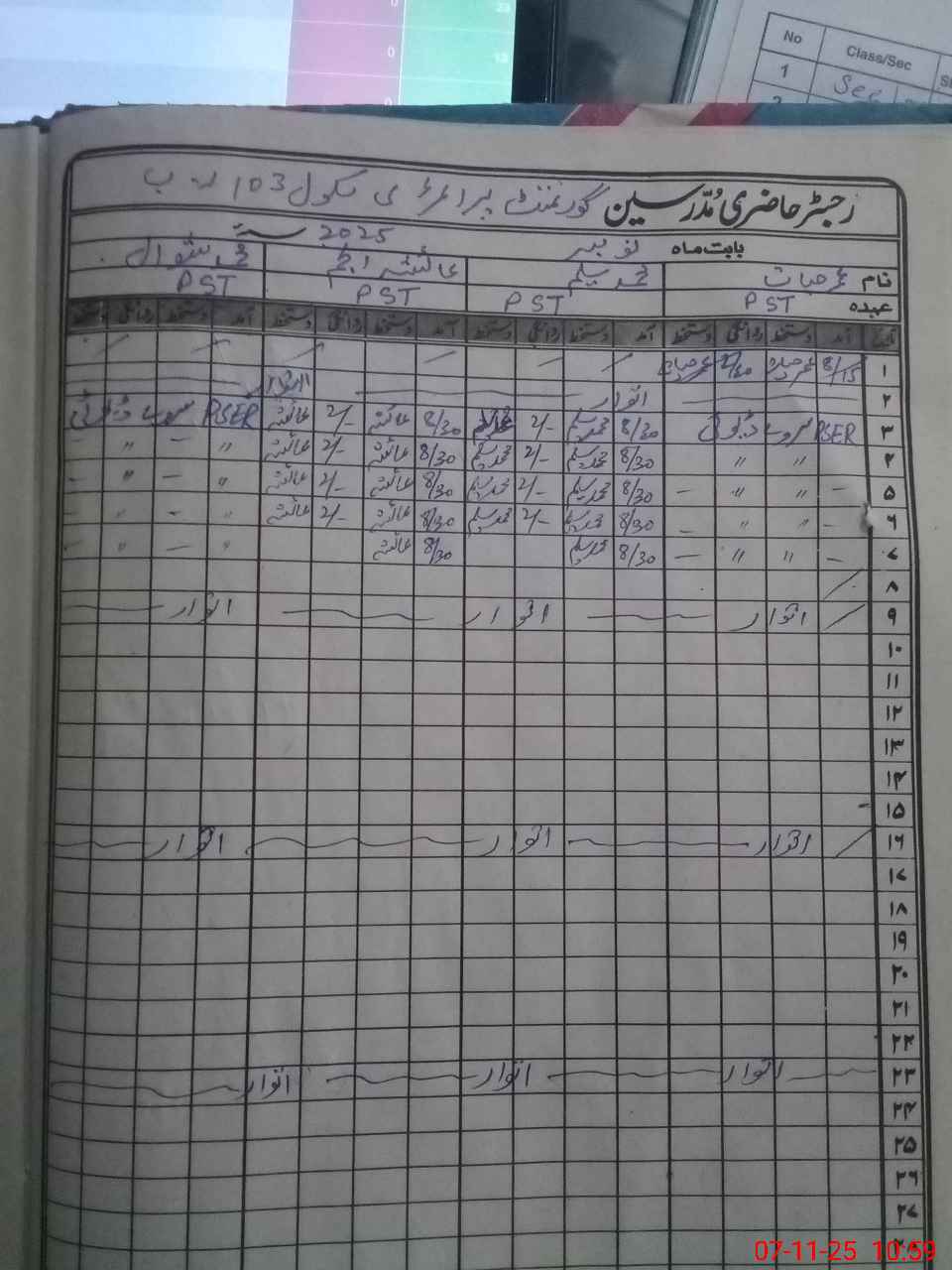 | CNIC | Full Name | Designation | R/C | Absence During Last Calender Month |