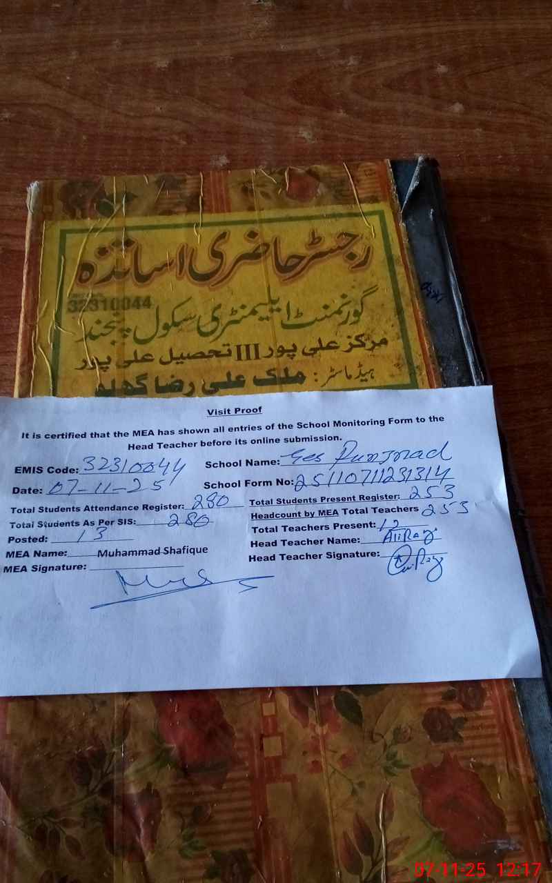 | Attendance Register | Head Teacher | MEA with School | Visit Proof |