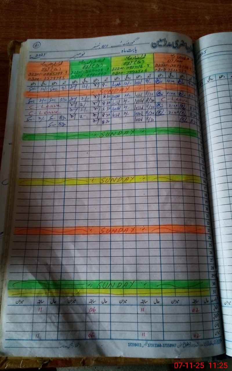 | CNIC | Full Name | Designation | R/C | Absence During Last Calender Month |