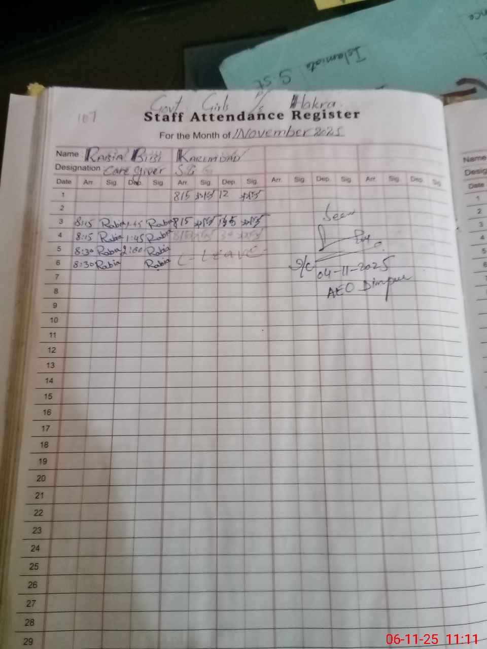 | Monitoring Date: 06-11-2025 | Start Time: 06-11-2025 10:41 AM | End Time: 06-11-2025 11:35 AM | Name of MEA: Na**** Af**** | |