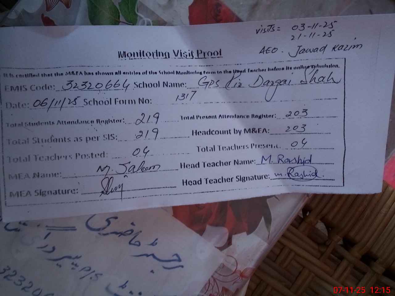 | EMIS Code: 32320664 | Name of School: GPS PIR DERGAI SHAH | |||