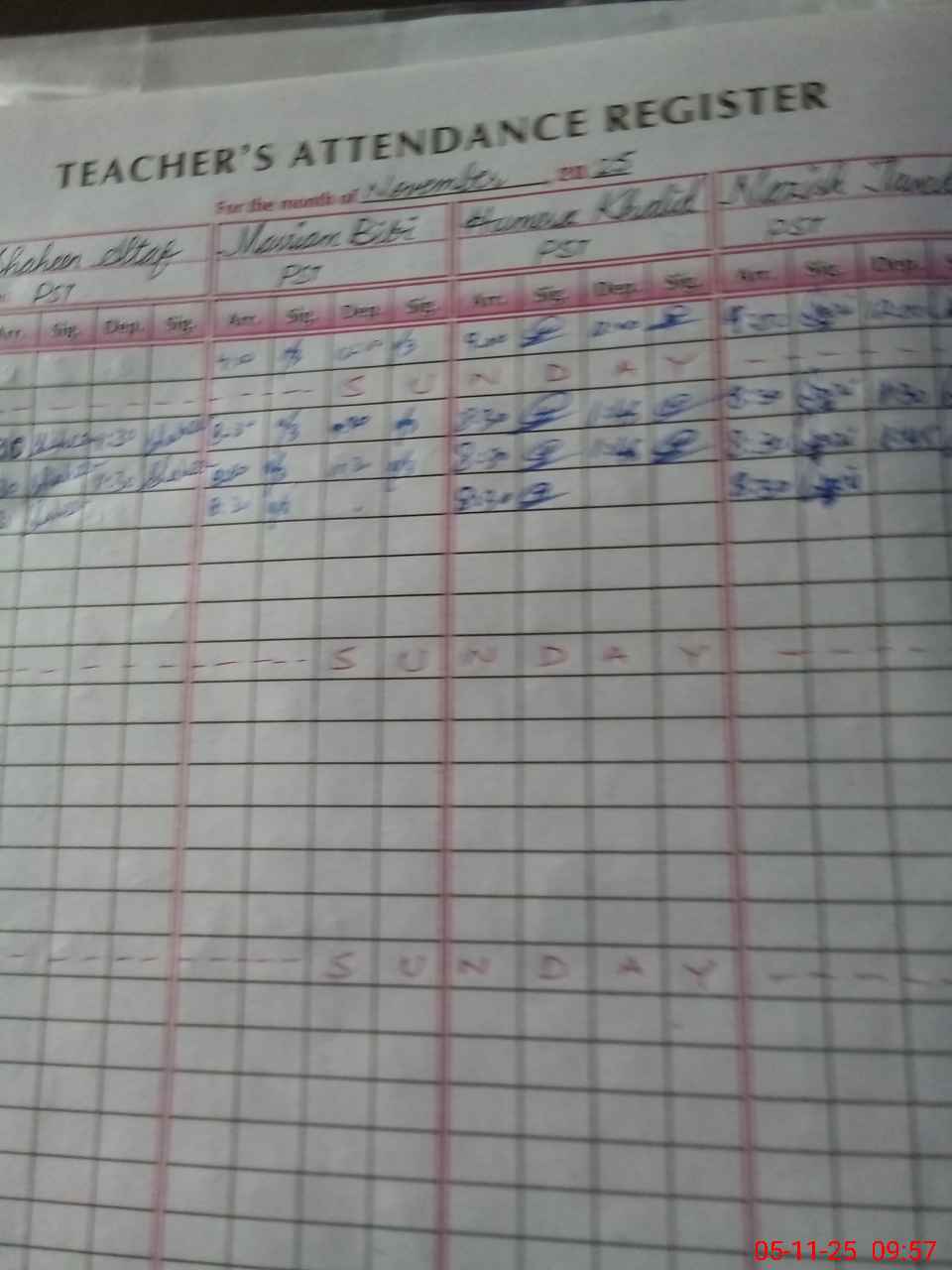 | CNIC | Full Name | Designation | R/C | Absence During Last Calender Month |