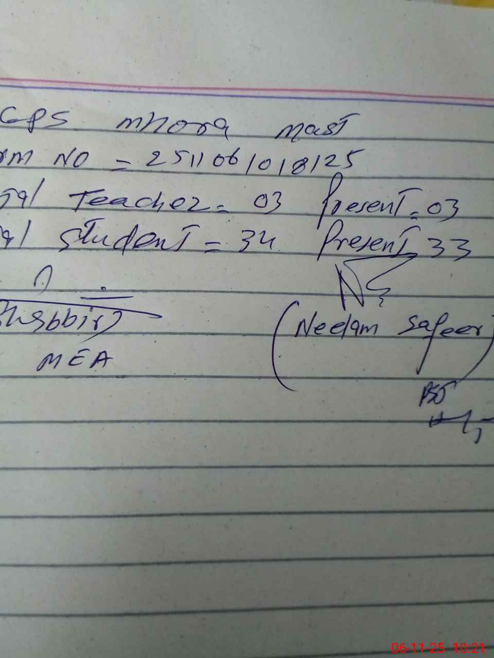 | Attendance Register | Head Teacher | MEA with School | Visit Proof |
