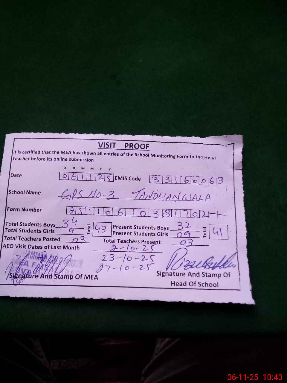 | EMIS Code: 33160063 | Name of School: GPS NO 3 TANDLIANWALA | |||