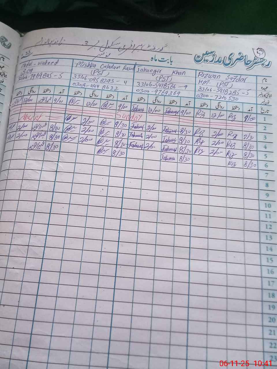 | Name: RI**** SA**** Designation: (School Headmaster's/Headmistress's) PST Phone/Cell Number: 03**** |