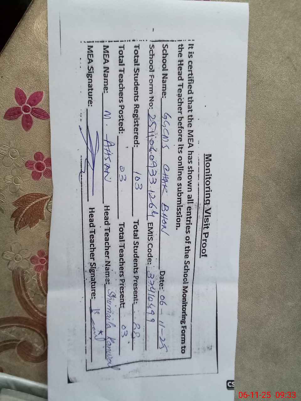 | EMIS Code: 37410499 | Name of School: GGCMS CHAK BHON | |||