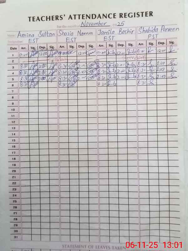 | Name: Aa**** Su**** Designation: (School Headmaster's/Headmistress's) Head Mistress Phone/Cell Number: 03**** |