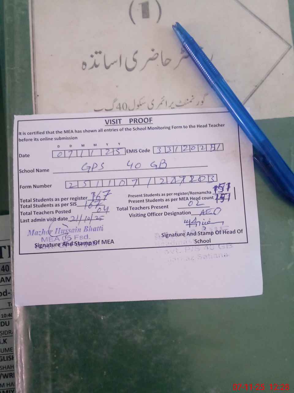 | EMIS Code: 33120251 | Name of School: GPS 40 GB | |||