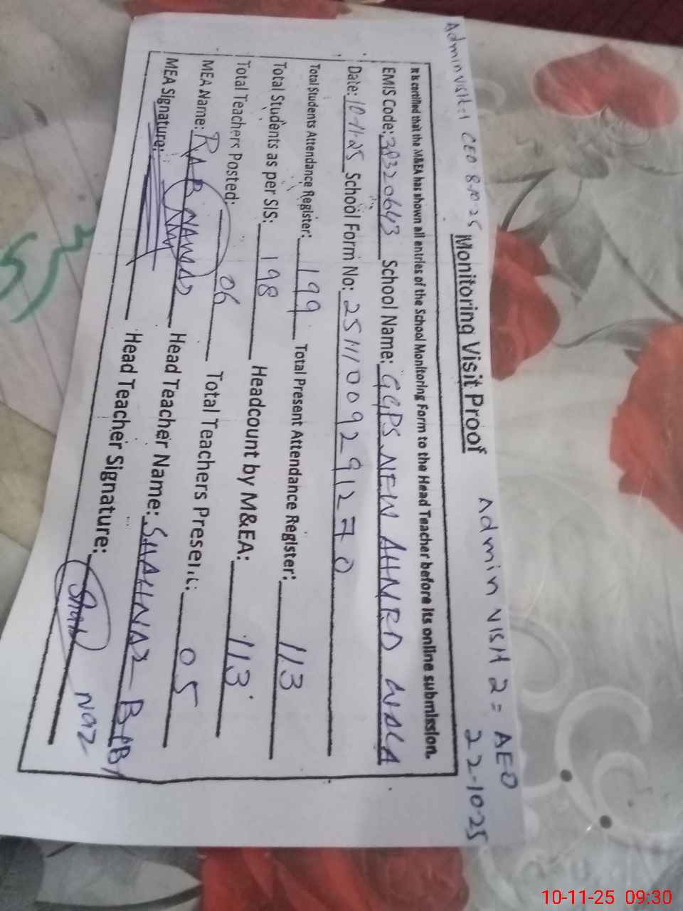 | EMIS Code: 38320643 | Name of School: GGPS NEW AHMED WALA | |||