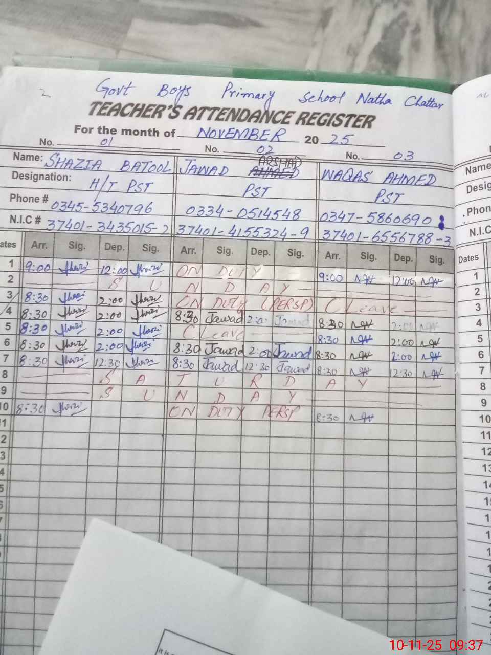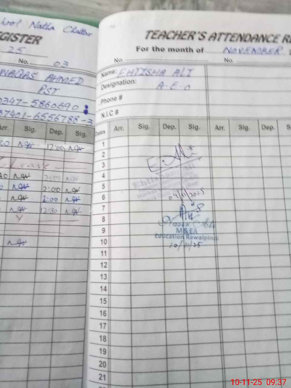 | Name: Sh**** BA**** Designation: (School Headmaster's/Headmistress's) PST Phone/Cell Number: 03**** |