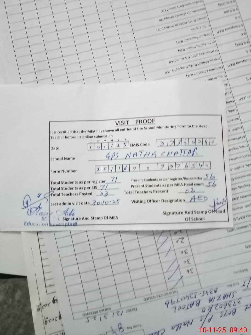 | EMIS Code: 37360240 | Name of School: GPS NATHA CHATTAR | |||