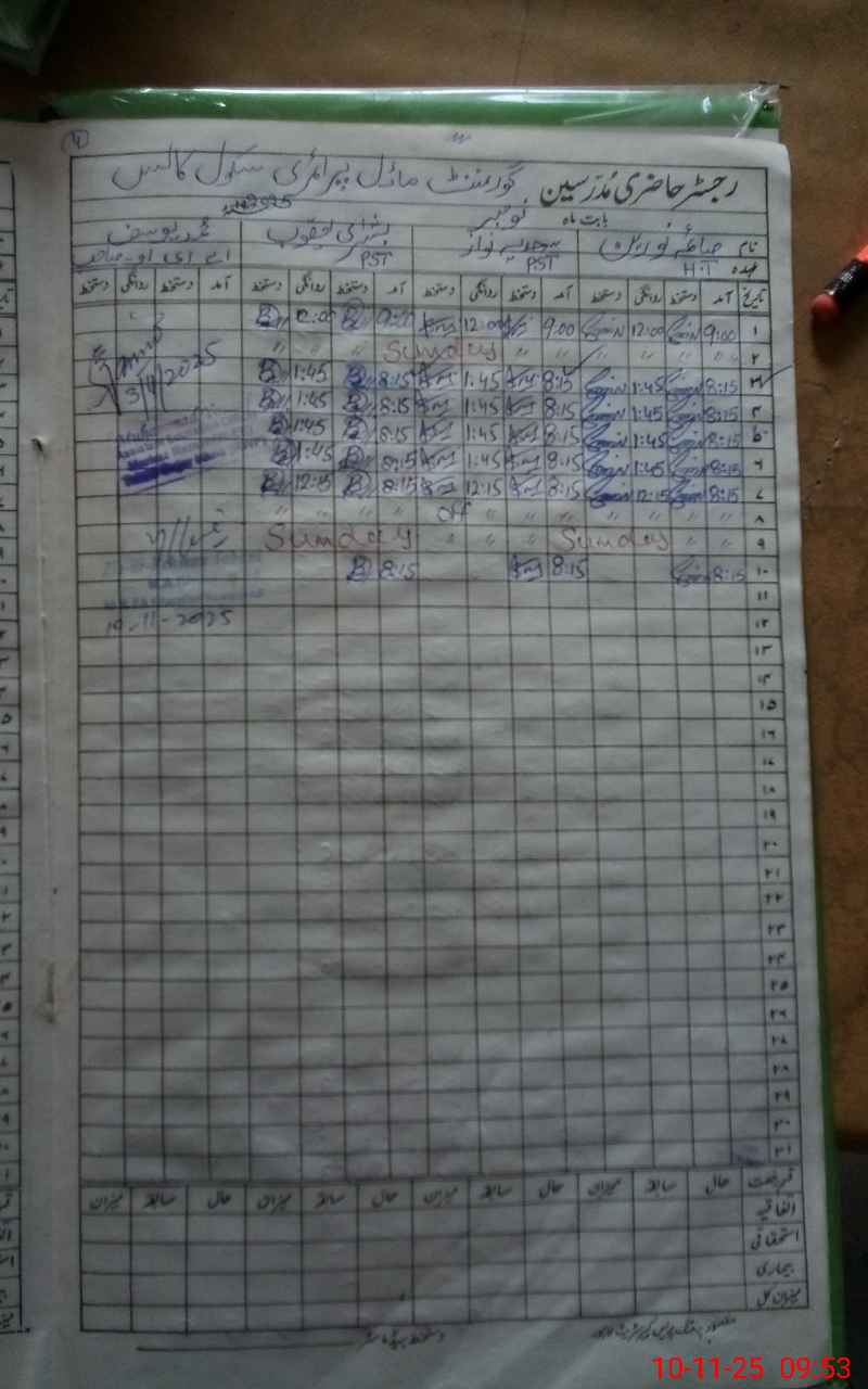 | CNIC | Full Name | Designation | R/C | Absence During Last Calender Month |