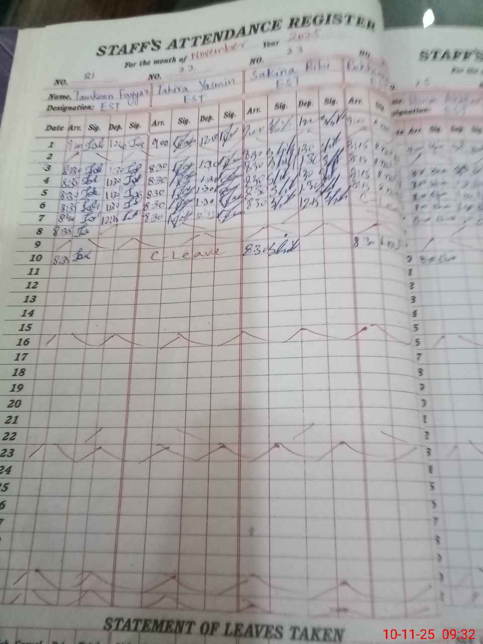 | 35**** | Is**** Fa**** | Regular | 31 | 0 | 0 | 31 | 0 | 0 | 0 | 0 | 0 | Maternity | |
