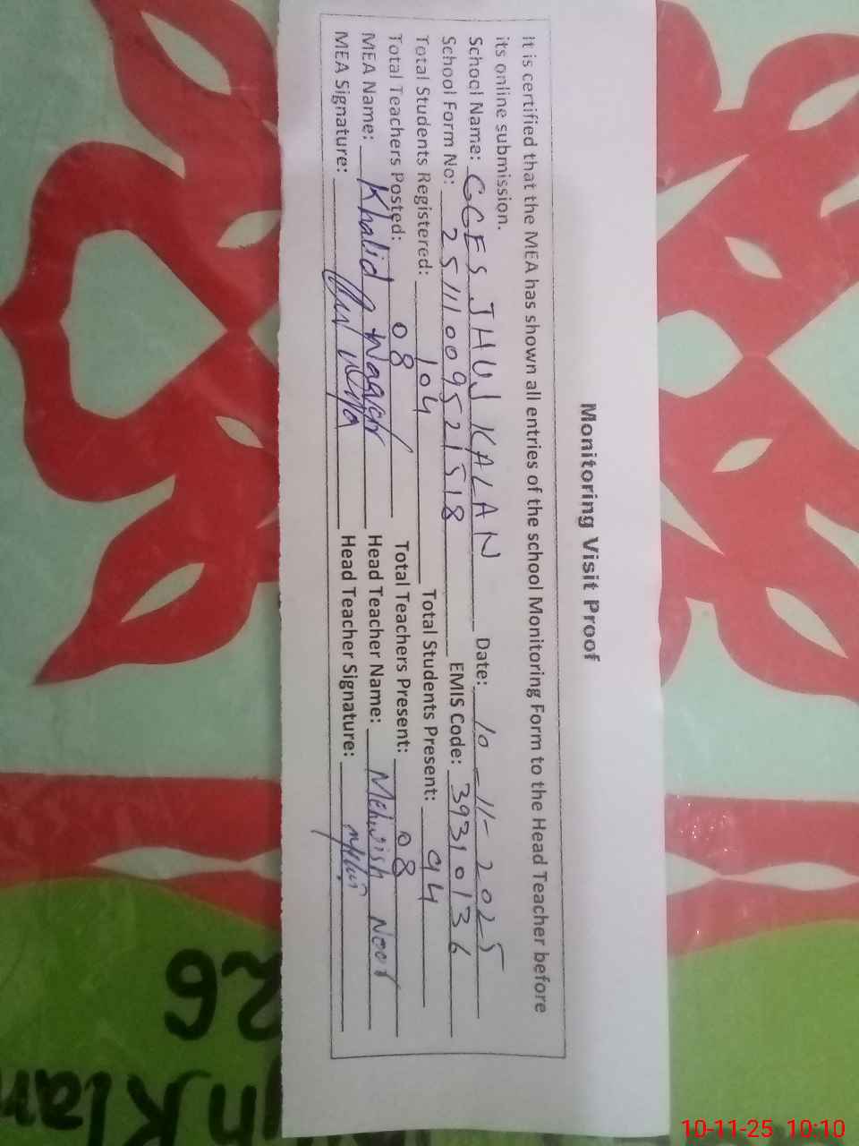 | EMIS Code: 39310136 | Name of School: GGES JHUJ KALAN | |||