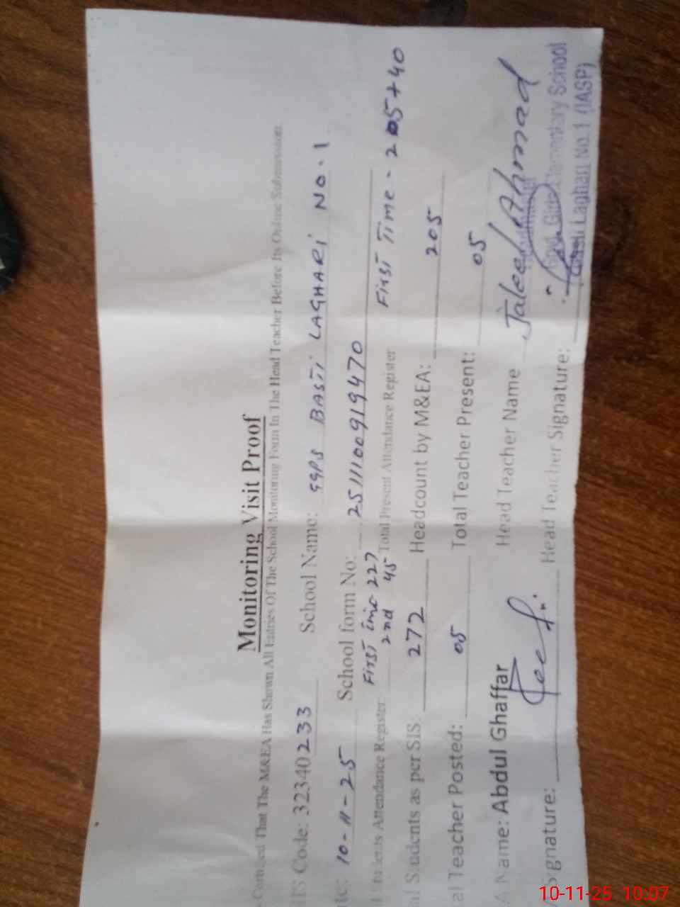 | Monitoring Date: 10-11-2025 | Start Time: 10-11-2025 09:19 AM | End Time: 10-11-2025 10:11 AM | Name of MEA: Ab**** Gh**** | |