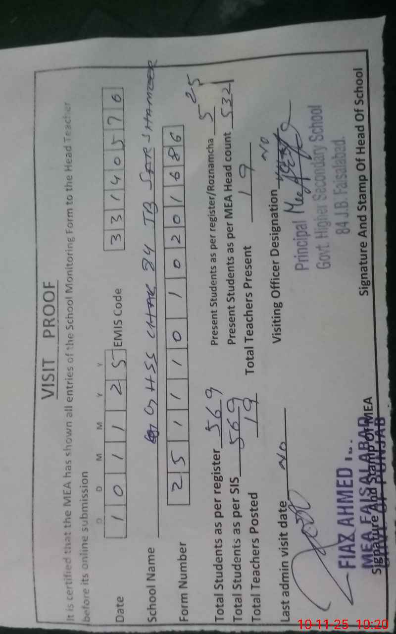 | EMIS Code: 33140570 | Name of School: GHSS CHAK 84 JB FAISALABAD | |||