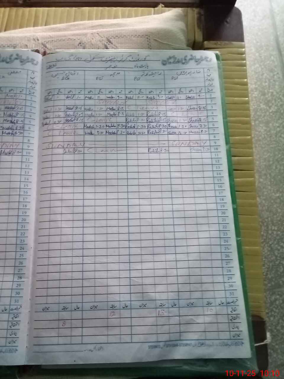 | CNIC | Full Name | Designation | R/C | Absence During Last Calender Month |