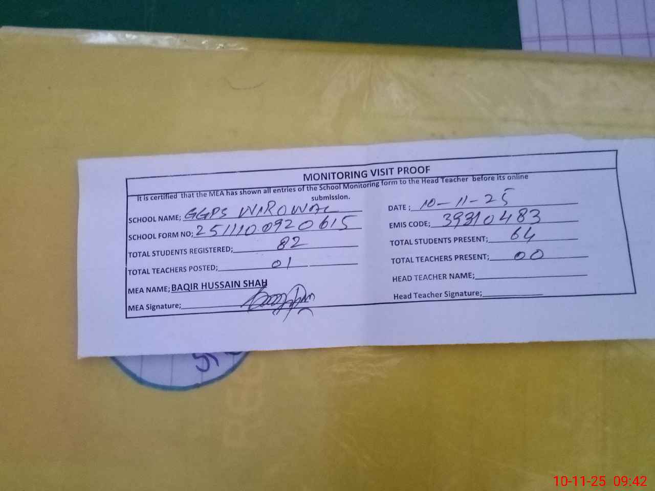 | EMIS Code: 39310483 | Name of School: GGPS VIROOWAL | |||