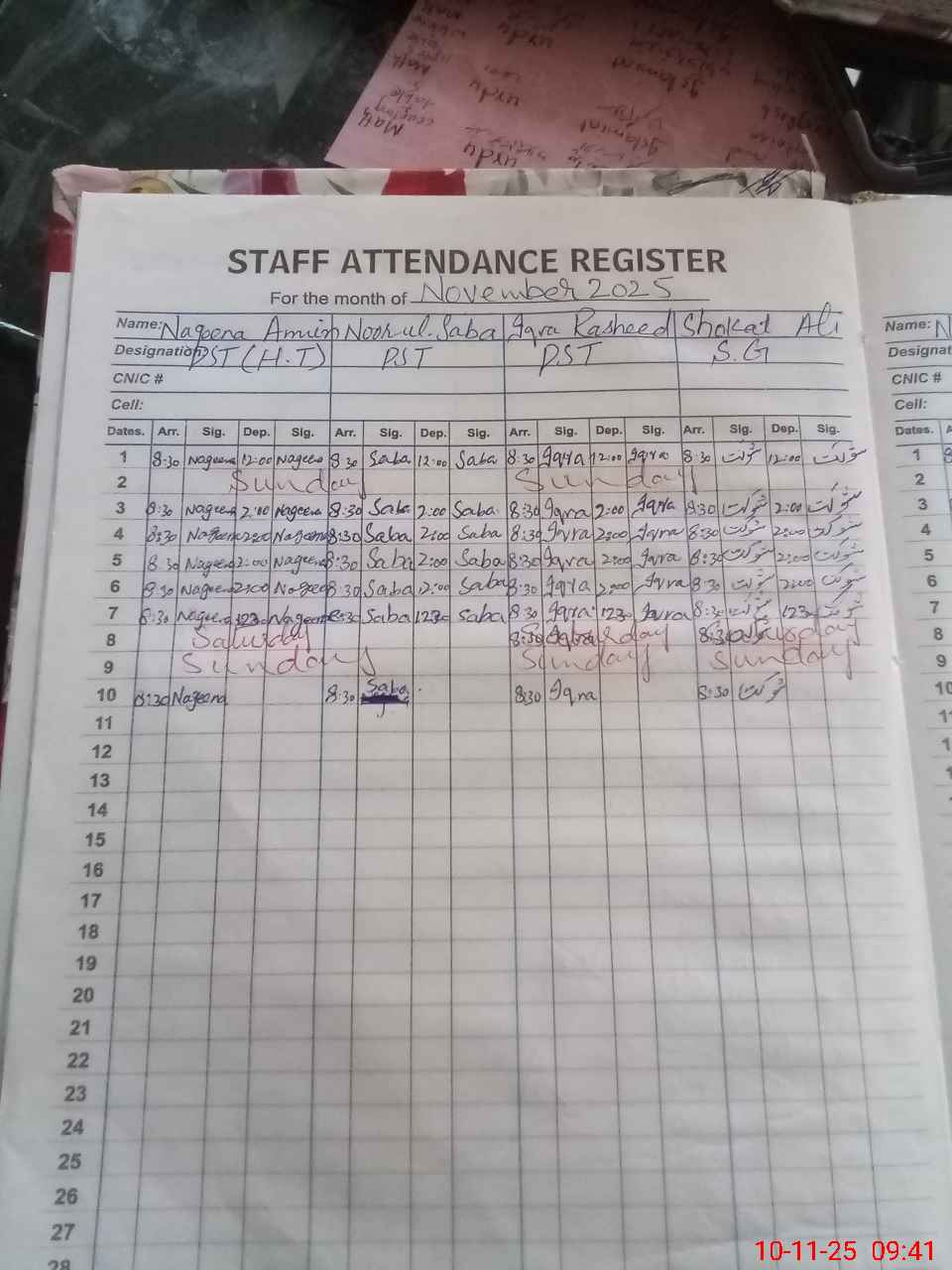 | Name: NA**** AM**** Designation: (School Headmaster's/Headmistress's) PST Phone/Cell Number: 03**** |