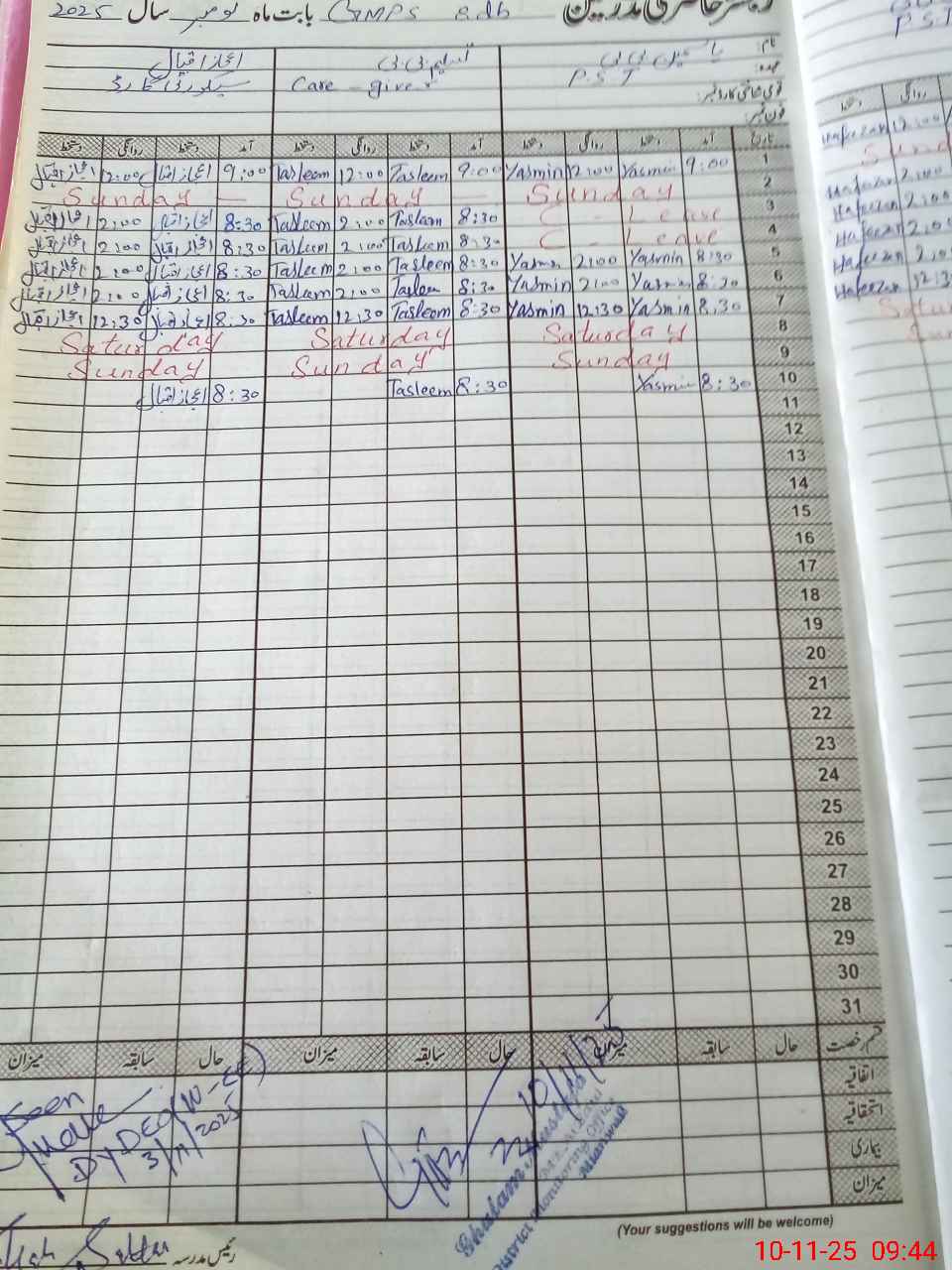 | Leave | Duty | Absent | Maternity | Medical | Ex- Pak |
