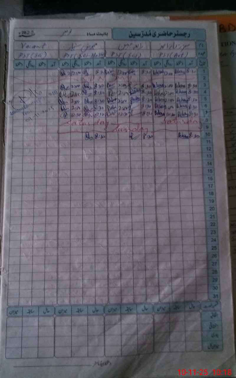 | CNIC | Full Name | Designation | R/C | Absence During Last Calender Month |