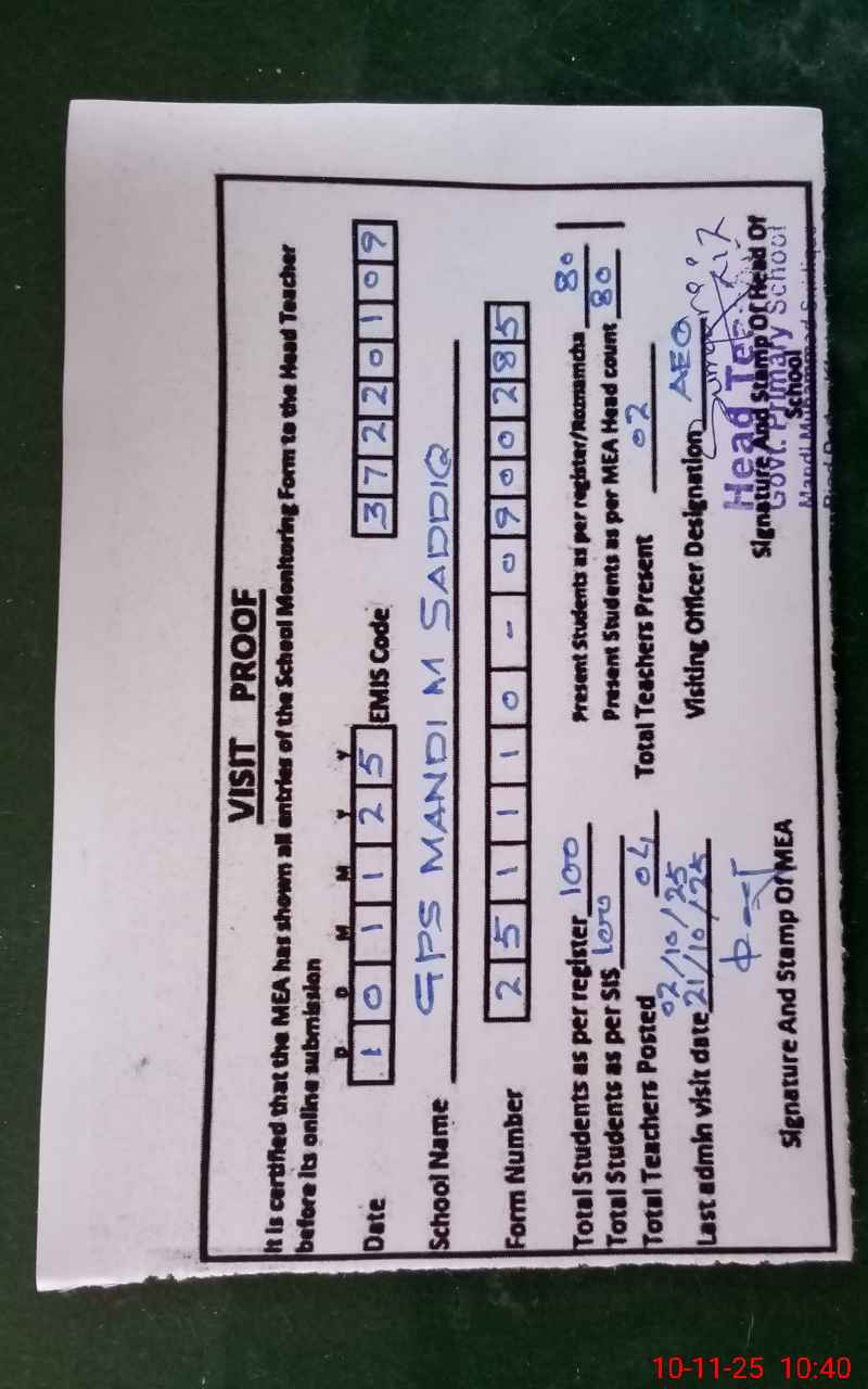 | EMIS Code: 37220109 | Name of School: GPS MANDI MUHAMMAD SIDDIQUE | |||
