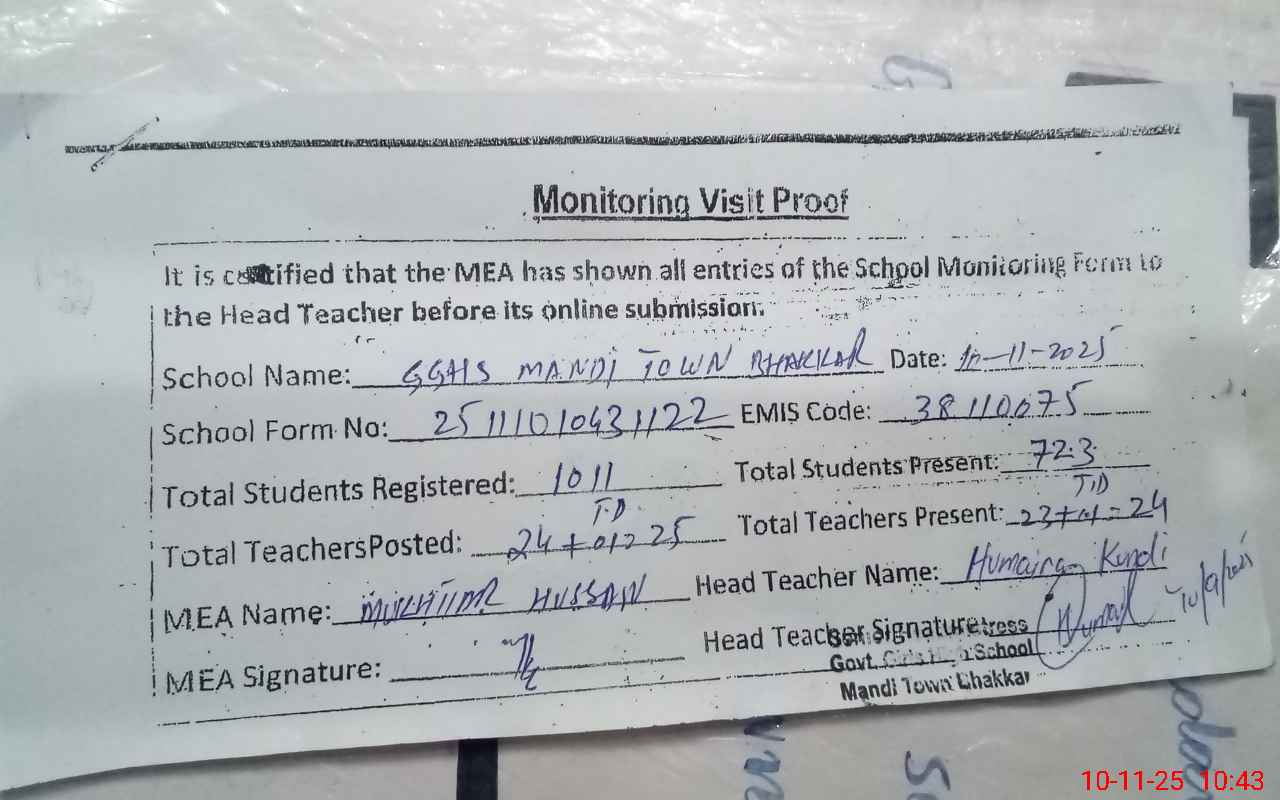 | EMIS Code: 38110075 | Name of School: GGHS MANDI TOWN BHAKKAR | |||