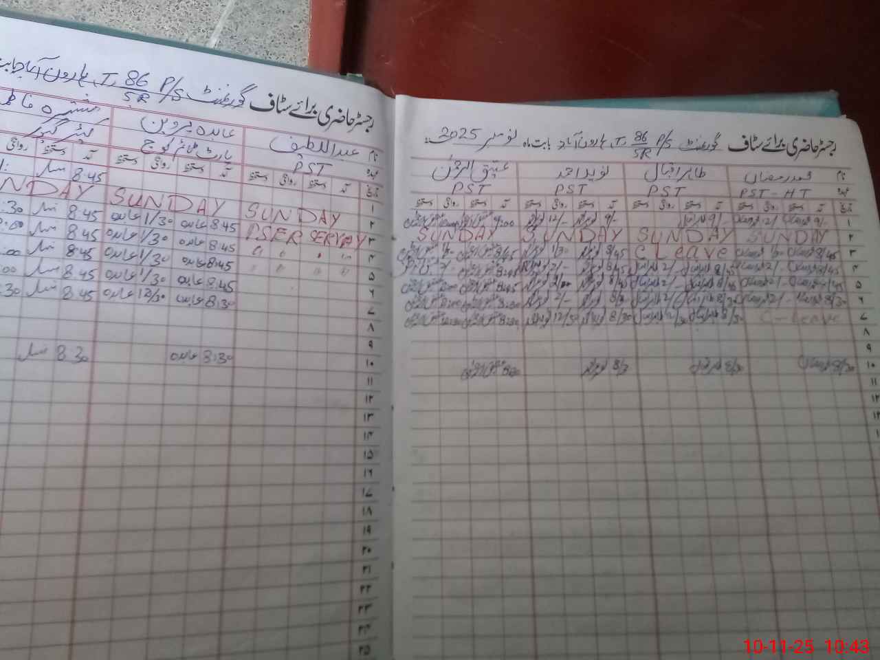 | CNIC | Full Name | Designation | R/C | Absence During Last Calender Month |
