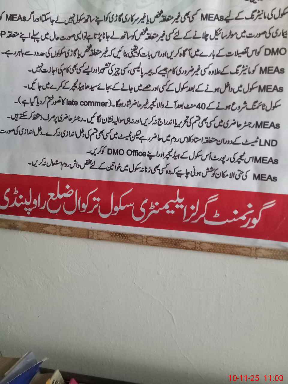 | Certified that this School was Inspected by the Undersigned MEA/DMO Today and the Information Stated Above is as Per Record. | |||||