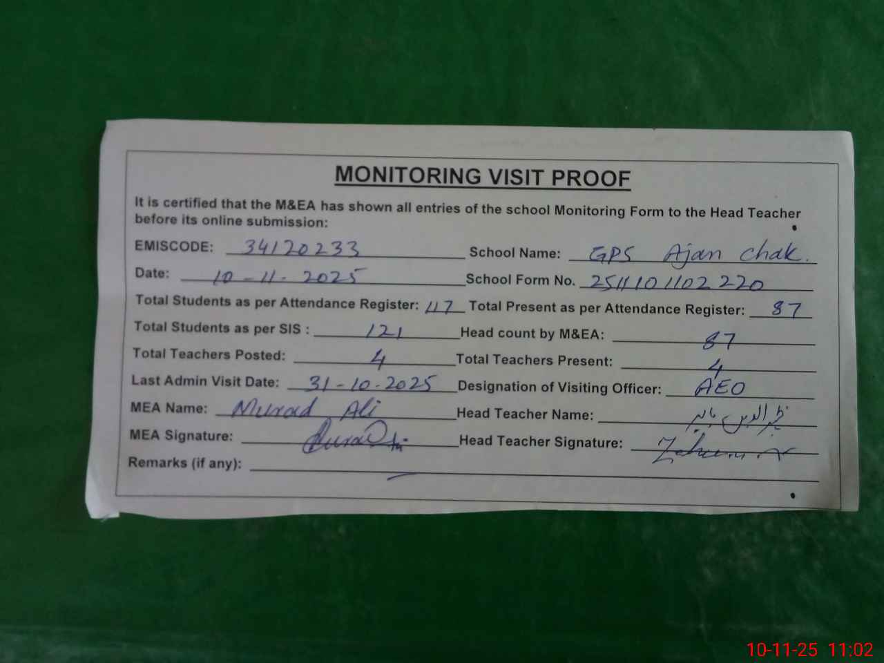 | EMIS Code: 34120233 | Name of School: GPS AJAN CHAK | |||
