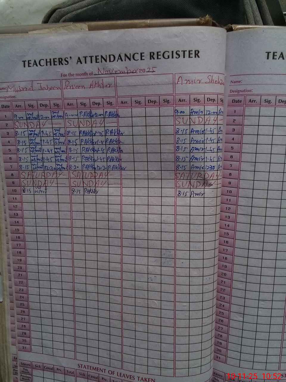 | Leave | Duty | Absent | Maternity | Medical | Ex- Pak |