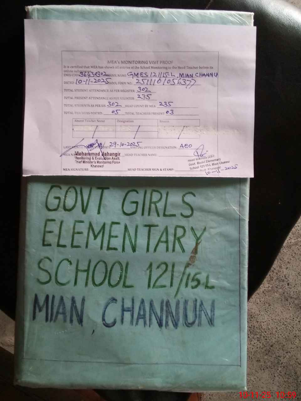 | Certified that this School was Inspected by the Undersigned MEA/DMO Today and the Information Stated Above is as Per Record. | |||||