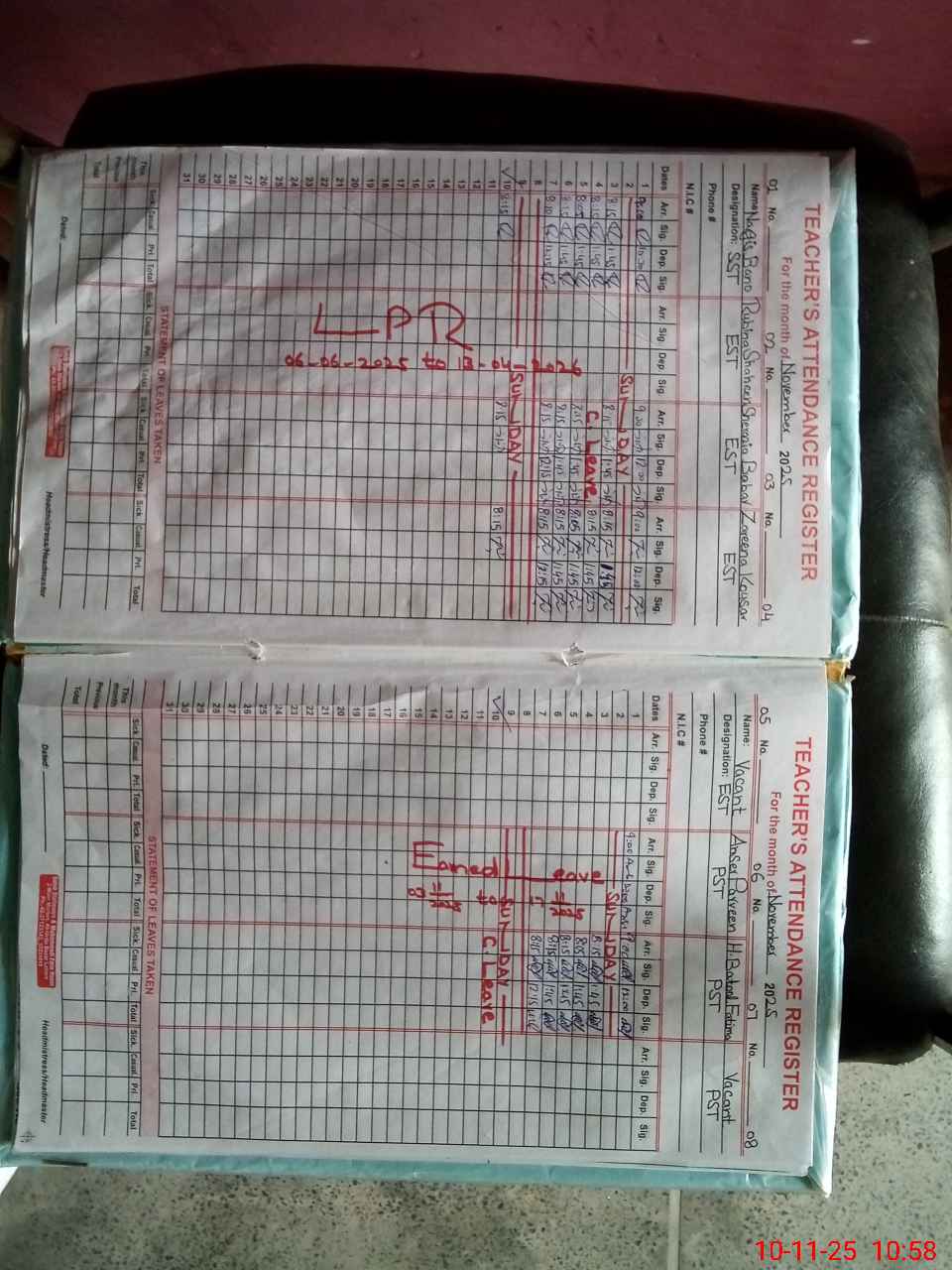 | CNIC | Full Name | Designation | R/C | Absence During Last Calender Month |