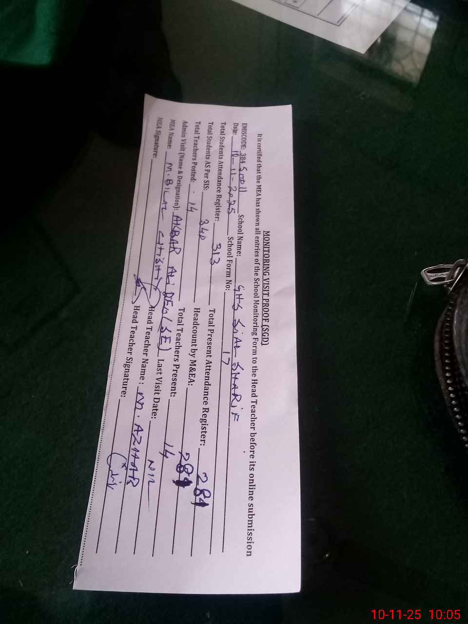 | Certified that this School was Inspected by the Undersigned MEA/DMO Today and the Information Stated Above is as Per Record. | |||||