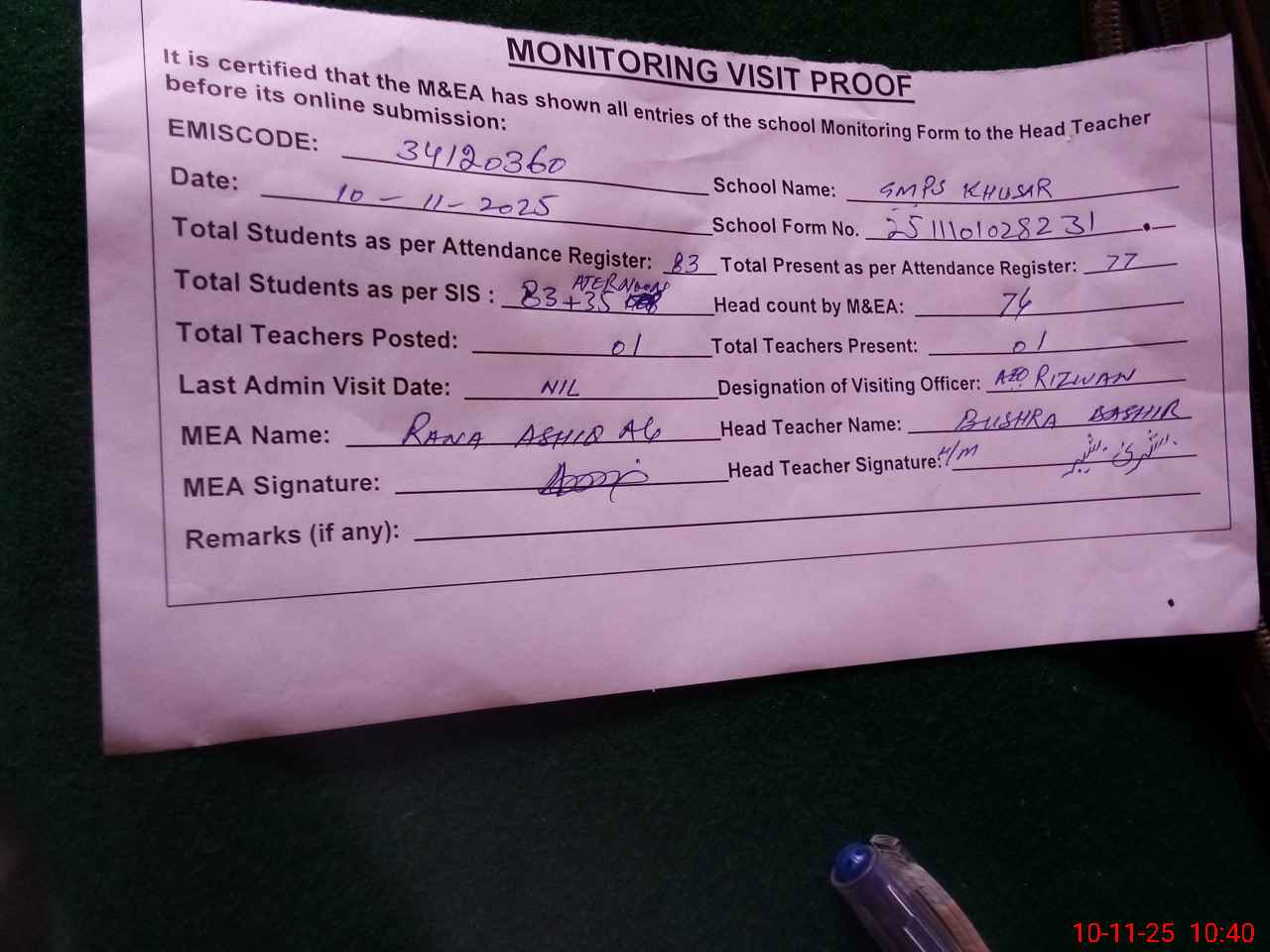 | EMIS Code: 34120360 | Name of School: GMPS KHUSAR | |||