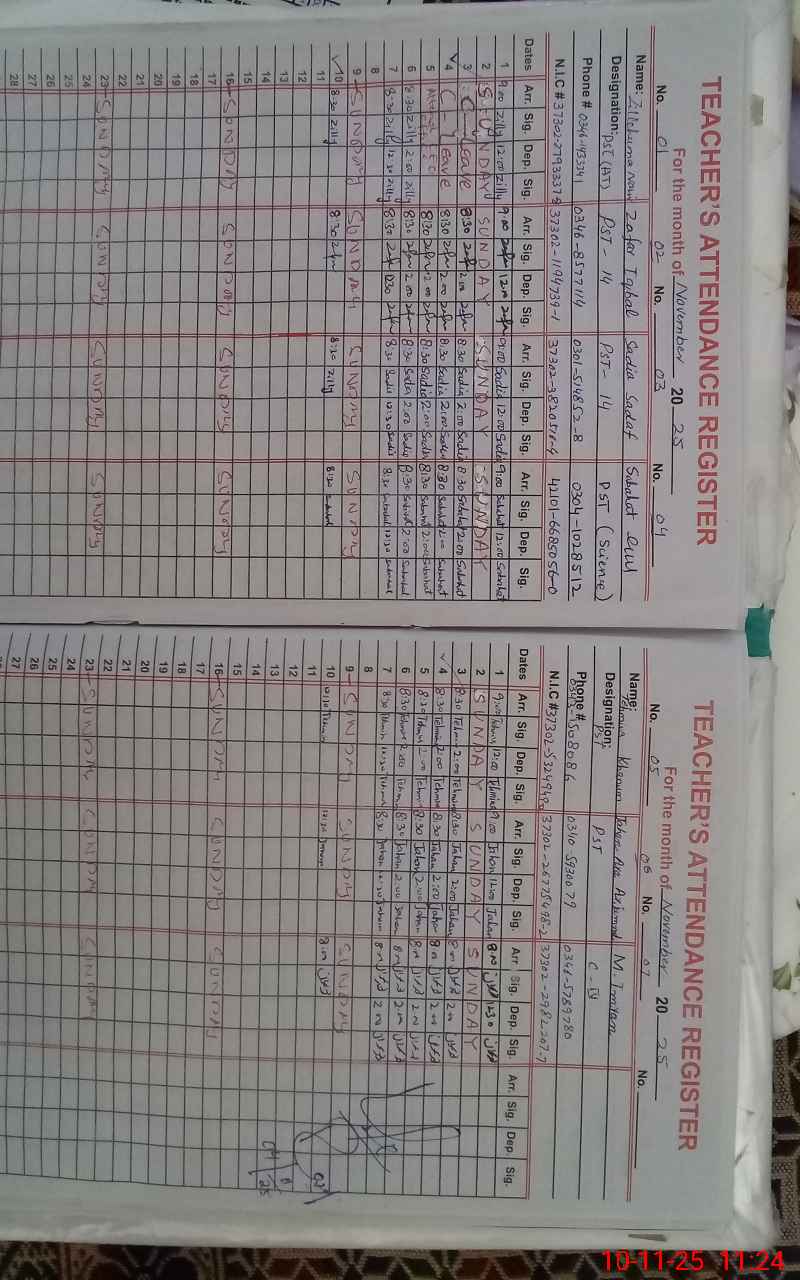 | CNIC | Full Name | Designation | R/C | Absence During Last Calender Month |