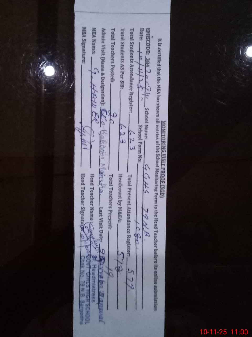 | Monitoring Date: 10-11-2025 | Start Time: 10-11-2025 09:45 AM | End Time: 10-11-2025 11:01 AM | Name of MEA: GH**** HA**** | |