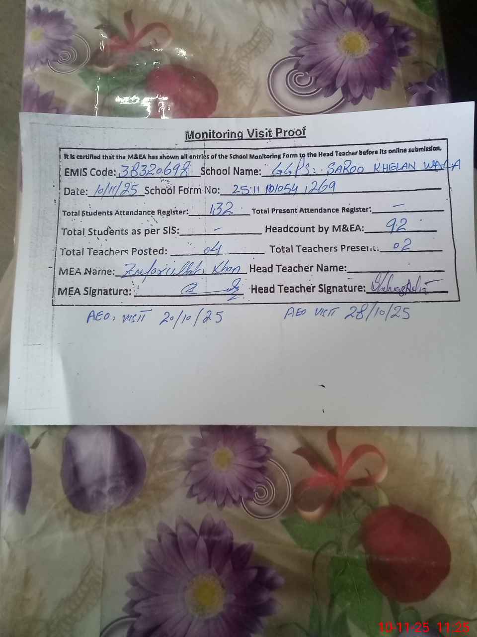 | EMIS Code: 38320698 | Name of School: GGPS SAROO KHELAN WALA | |||