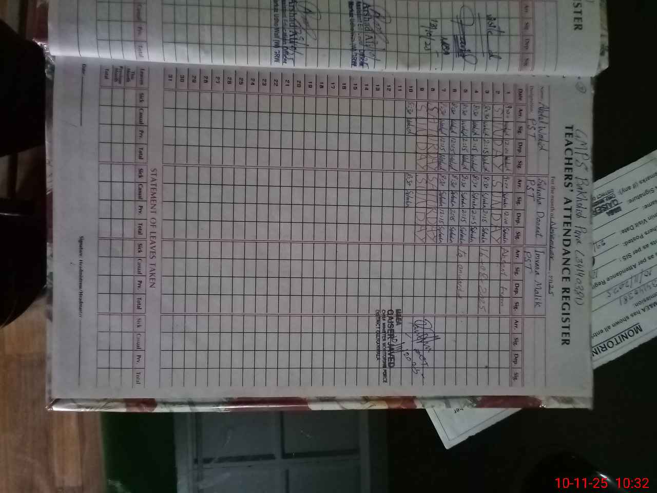 | 34**** | Im**** Ma**** | Regular | 0 | 0 | 31 | 0 | 0 | 0 | 0 | 0 | 0 | Absent (Un-Authorized) | |