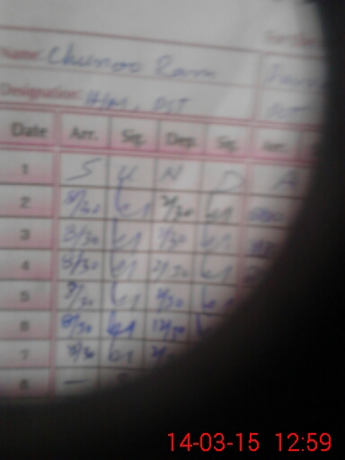 | Monitoring Date: 14-03-2015 | Start Time: 14-03-2015 12:47 PM | End Time: 14-03-2015 01:03 PM | Name of MEA: Al**** Ah**** Li**** | |