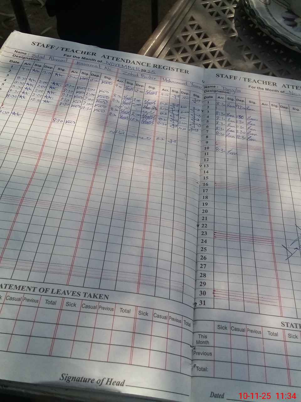 | CNIC | Full Name | Designation | R/C | Absence During Last Calender Month |