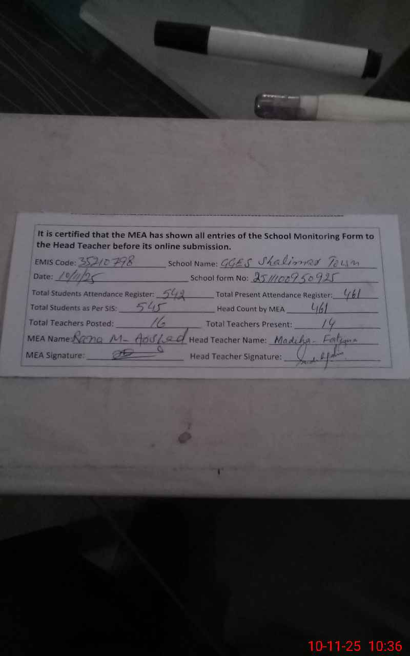| EMIS Code: 35210798 | Name of School: GGES SHALIMAR TOWN (EX-MCL) | |||
