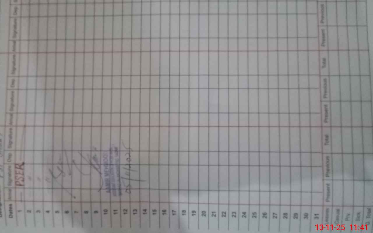 | CNIC | Full Name | Designation | R/C | Absence During Last Calender Month |