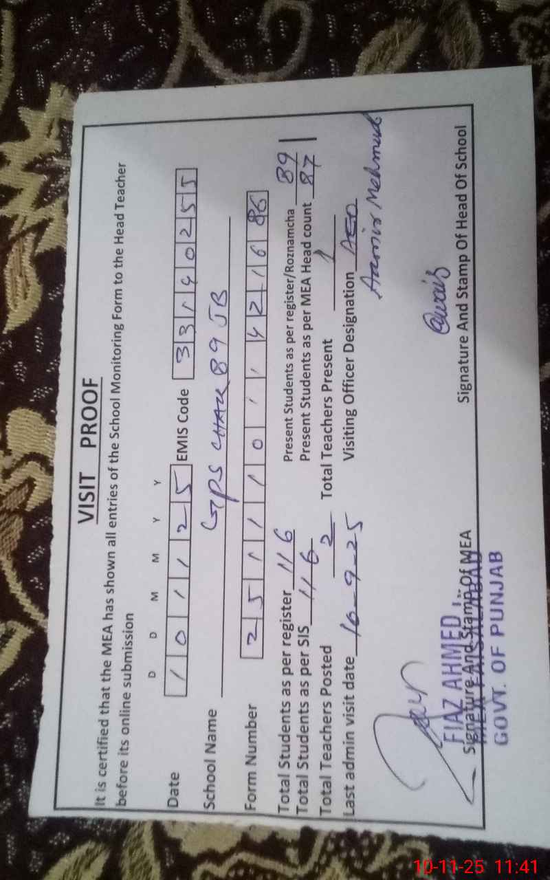 | Certified that this School was Inspected by the Undersigned MEA/DMO Today and the Information Stated Above is as Per Record. | |||||
