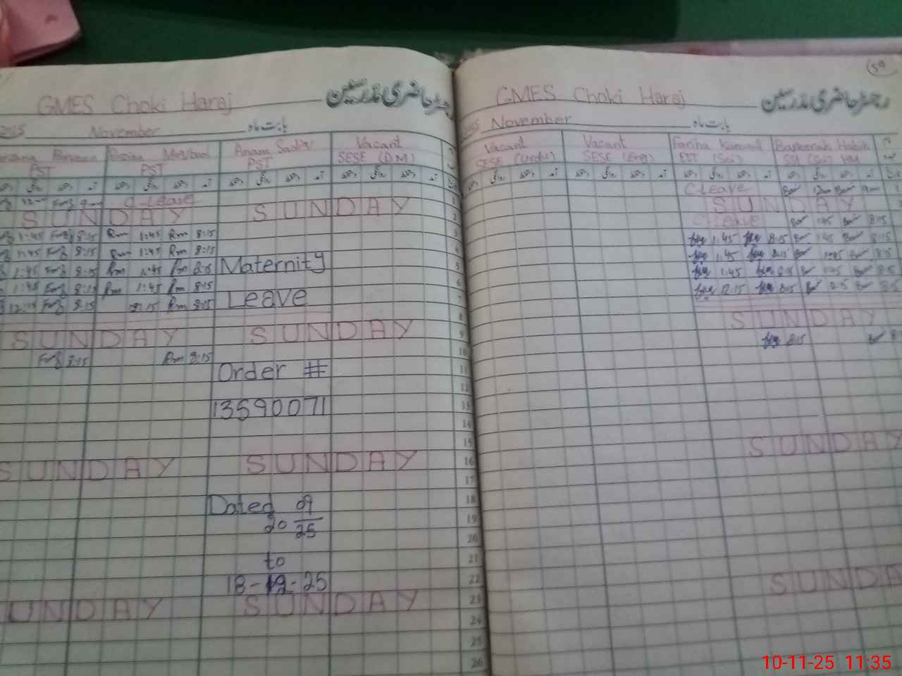 | Leave | Duty | Absent | Maternity | Medical | Ex- Pak |