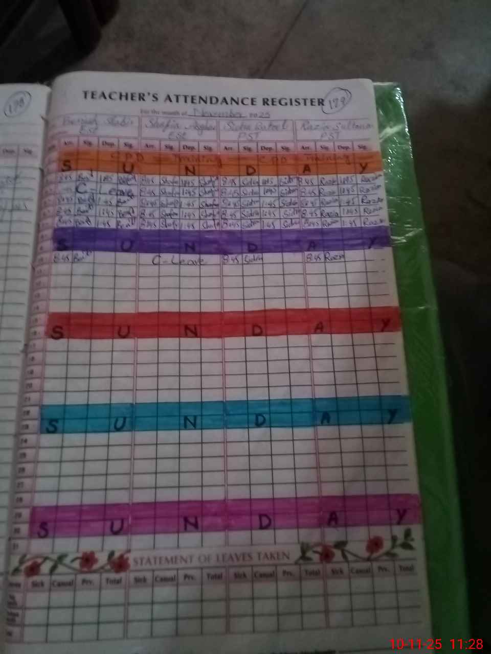 | Leave | Duty | Absent | Maternity | Medical | Ex- Pak |