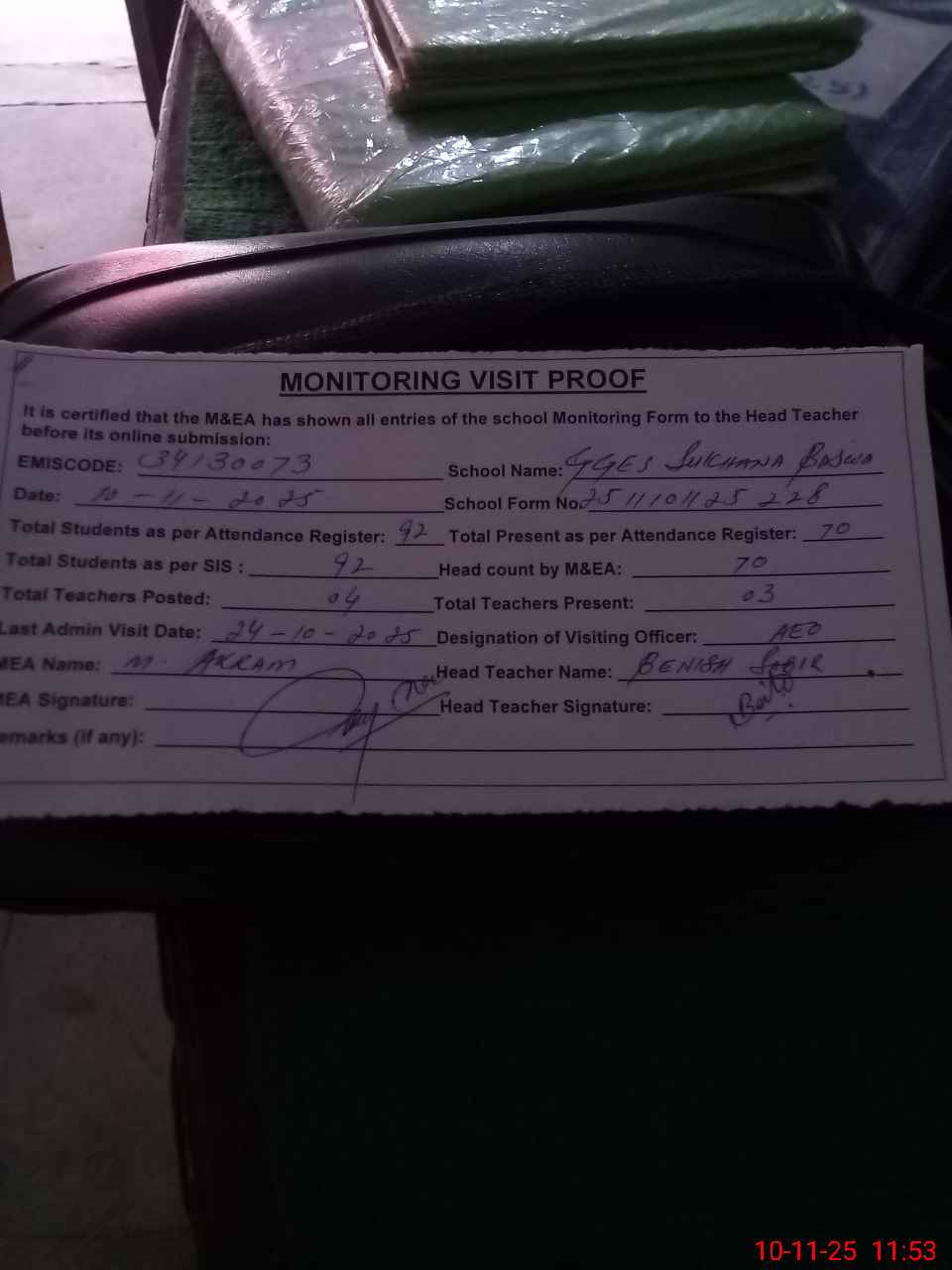 | EMIS Code: 34130073 | Name of School: GGES SUKHANA BAJWA | |||