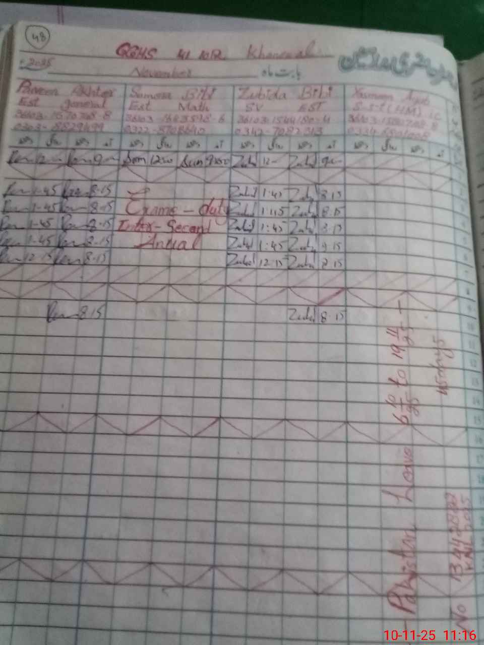| 36**** | Su**** Bi**** MAf**** | ESE Science | Regular | 0 | 0 | 0 | 0 | 0 | 0 | 0 | 0 | 0 | Exam Duty |