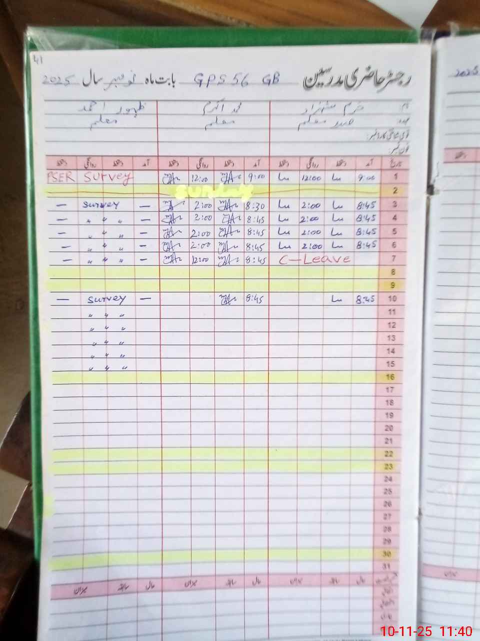 | CNIC | Full Name | Designation | R/C | Absence During Last Calender Month |