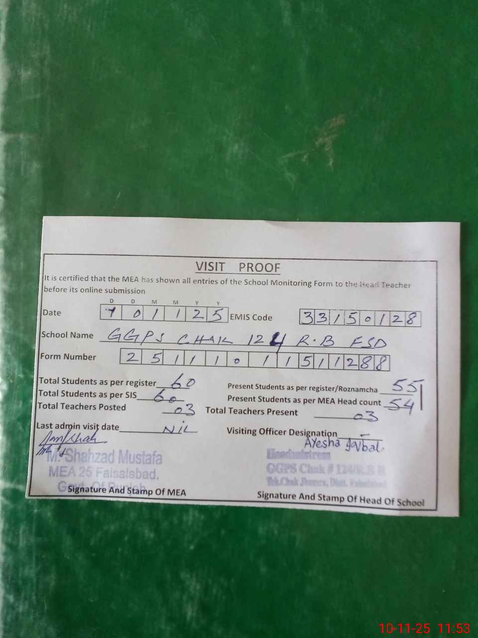 | EMIS Code: 33150128 | Name of School: GGPS CHAK 124 RB | |||